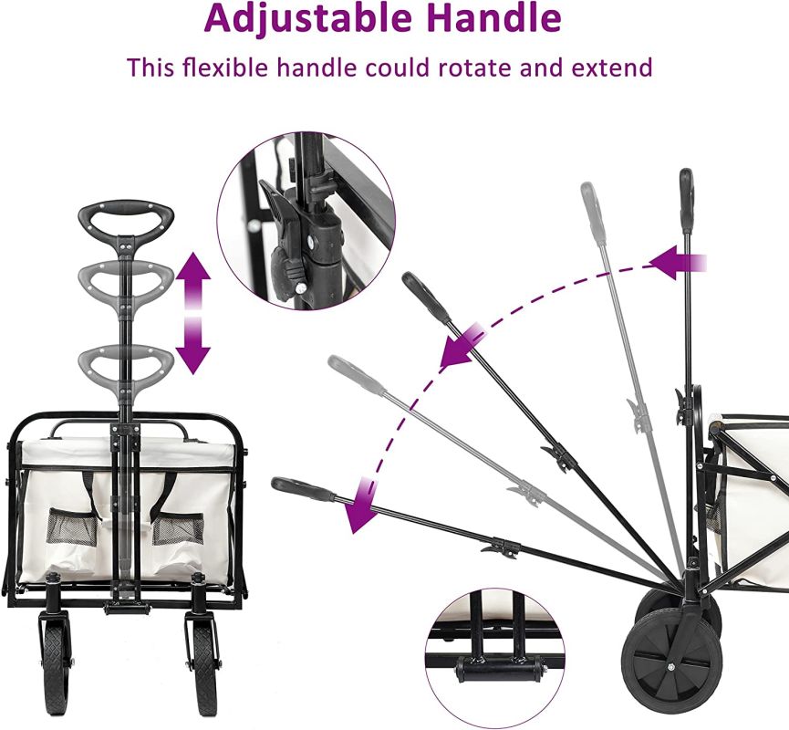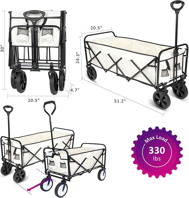 - Smart & Heavy Loaded Design: The Folding Garden Cart features a smart design, including a telescoping adjustable handle and 360° swivel anti-slip wheels. With these features, effortless transportation is possible across various surfaces, even with a heavy load of up to 330 lbs.