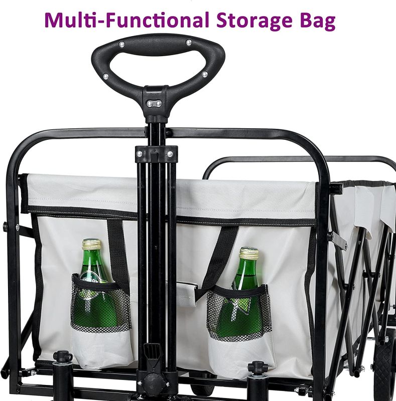 - Focus on Details: The cart is thoughtfully designed with attention to detail. It includes an adjustable handle with a nylon handle cloth, providing effortless transport and comfort. Additionally, the cart features 2 mesh cup holders, ensuring secure storage for your beverages during use.