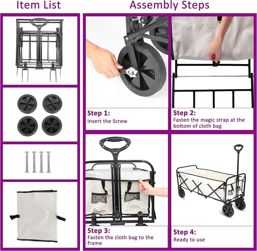 - Multi-Scenarios: This cart combo is highly versatile, suitable for a wide range of scenarios including gardens, homes, beaches, camping trips, offices, warehouses, garages, workshops, supermarkets, and schools. The foldable structure enables easy storage, making it a convenient choice for those seeking practical solutions.